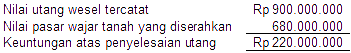 d) Keuntungan atau kerugian PT Andalas atas penyelesaian piutang wesel